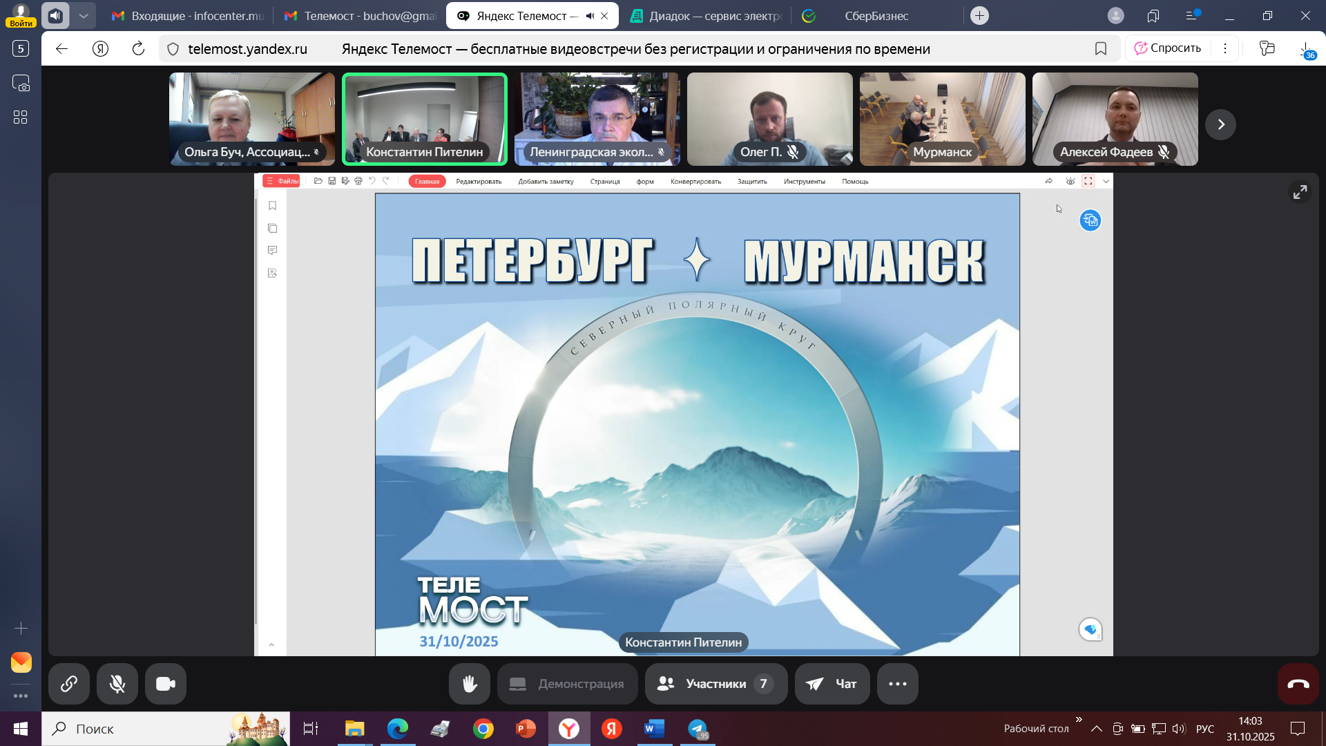 Ассоциация подрядчиков «Мурманшельф» приняла участие в первом телемосте «Петербург — Мурманск» между Ассоциациями полярников Санкт-Петербурга и Мурманской области, который состоялся 31 октября 2025 года.